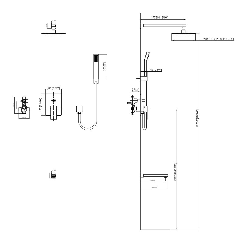 W14 13/16" H78 3/4" 8"Shower HeadStandard :