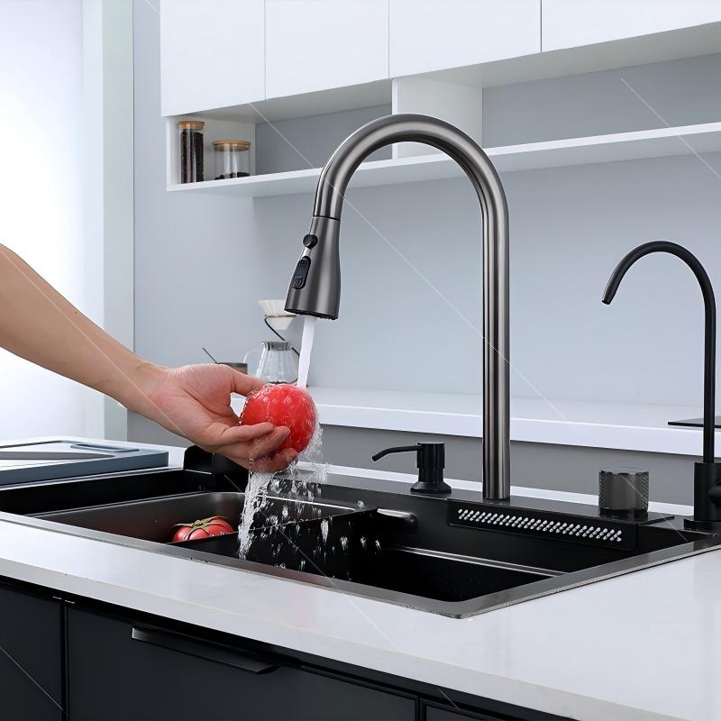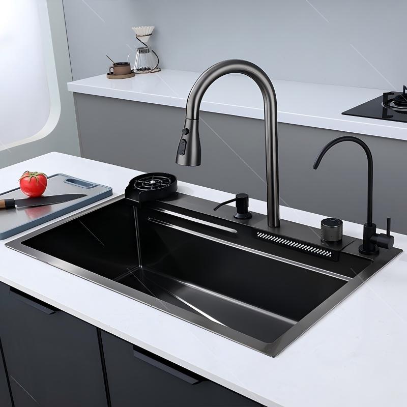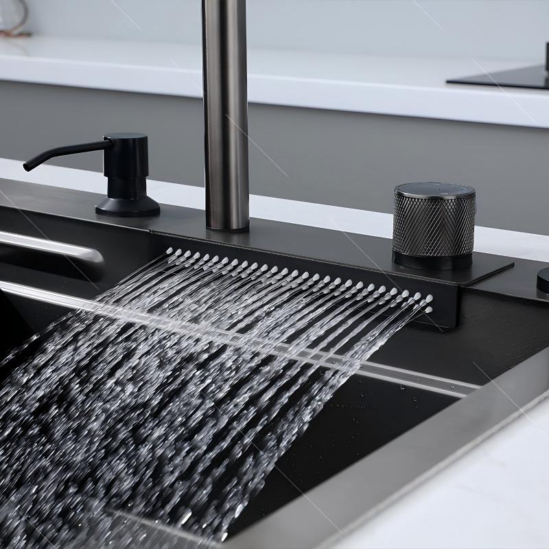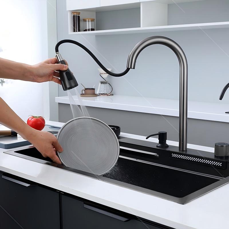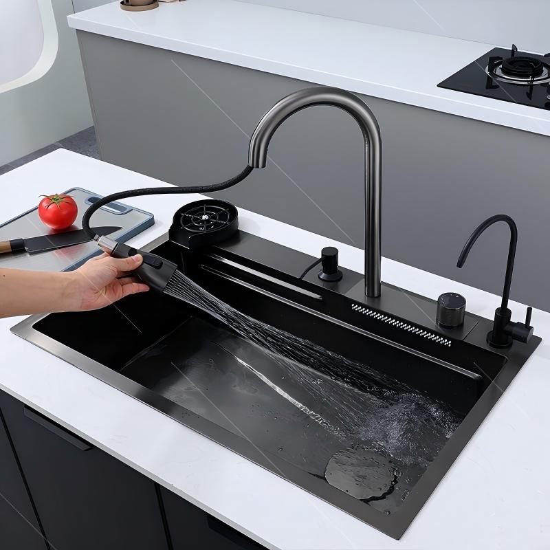 Luxury Modern Kitchen Sink 304 Stainless Steel Waterfall Multifunction Smart Kitchen Sink With Glass Washer